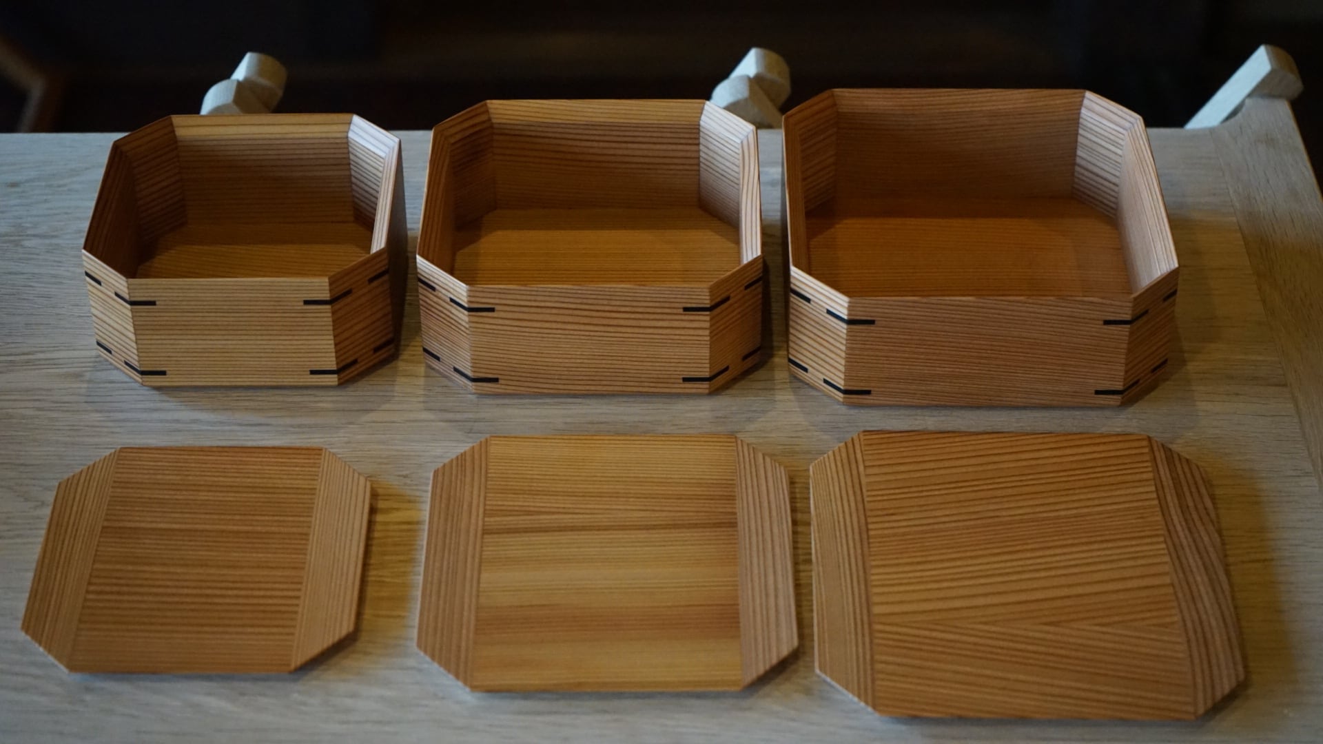 指物の技術を活かし、杉の柾目という材料の中でも狂いの少ない部材のみで